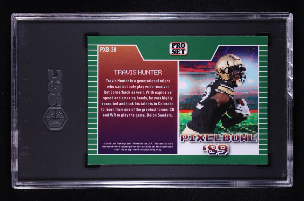 Travis Hunter 2024 Leaf Metal Collective Pro Set Pixel Bowl '89 Gold Super Prismatic #PXB38 #1/1 RC (SGC 9)