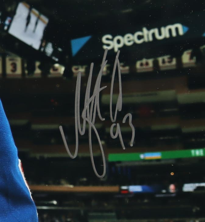 Custom frame measures 18" x 21" in size. Photograph is hand-signed by Mika Zibanejad (New York Rangers).