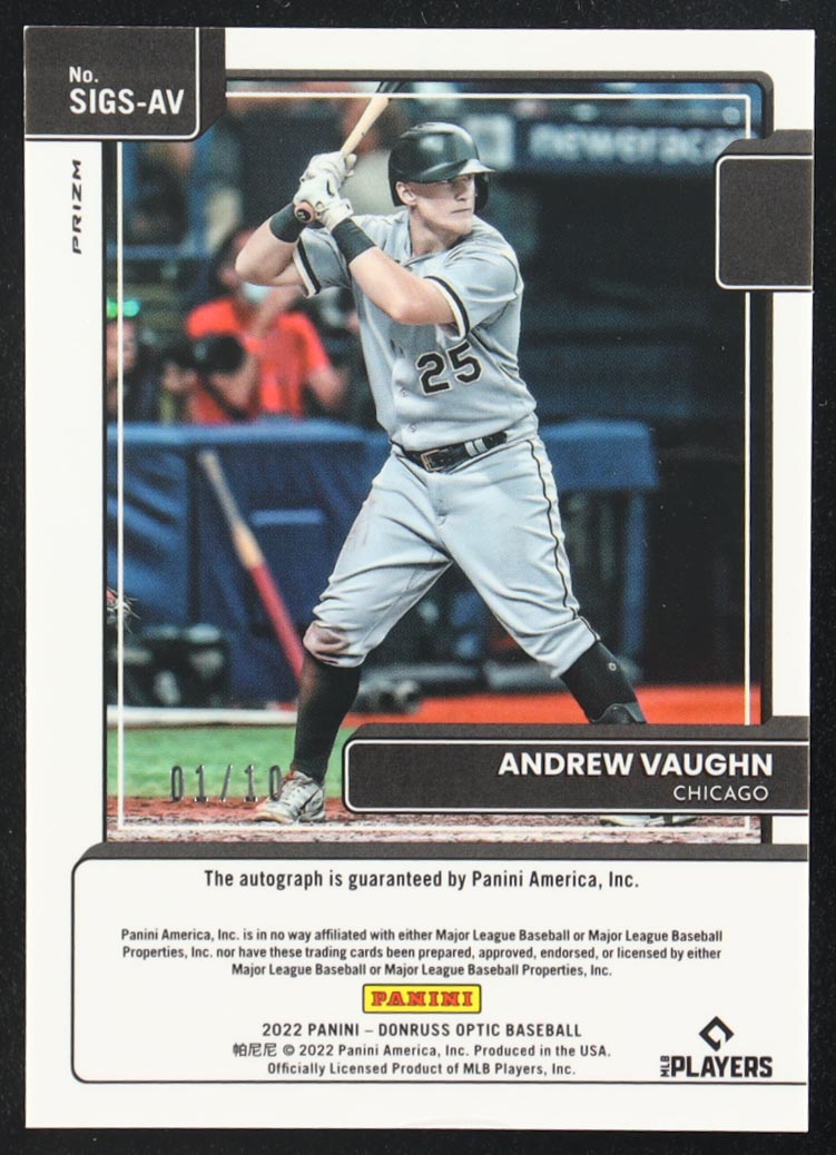 Andrew Vaughn 2022 Panini Donruss Optic Signature Series Gold Prizm Auto #SIGS-AV #01/10