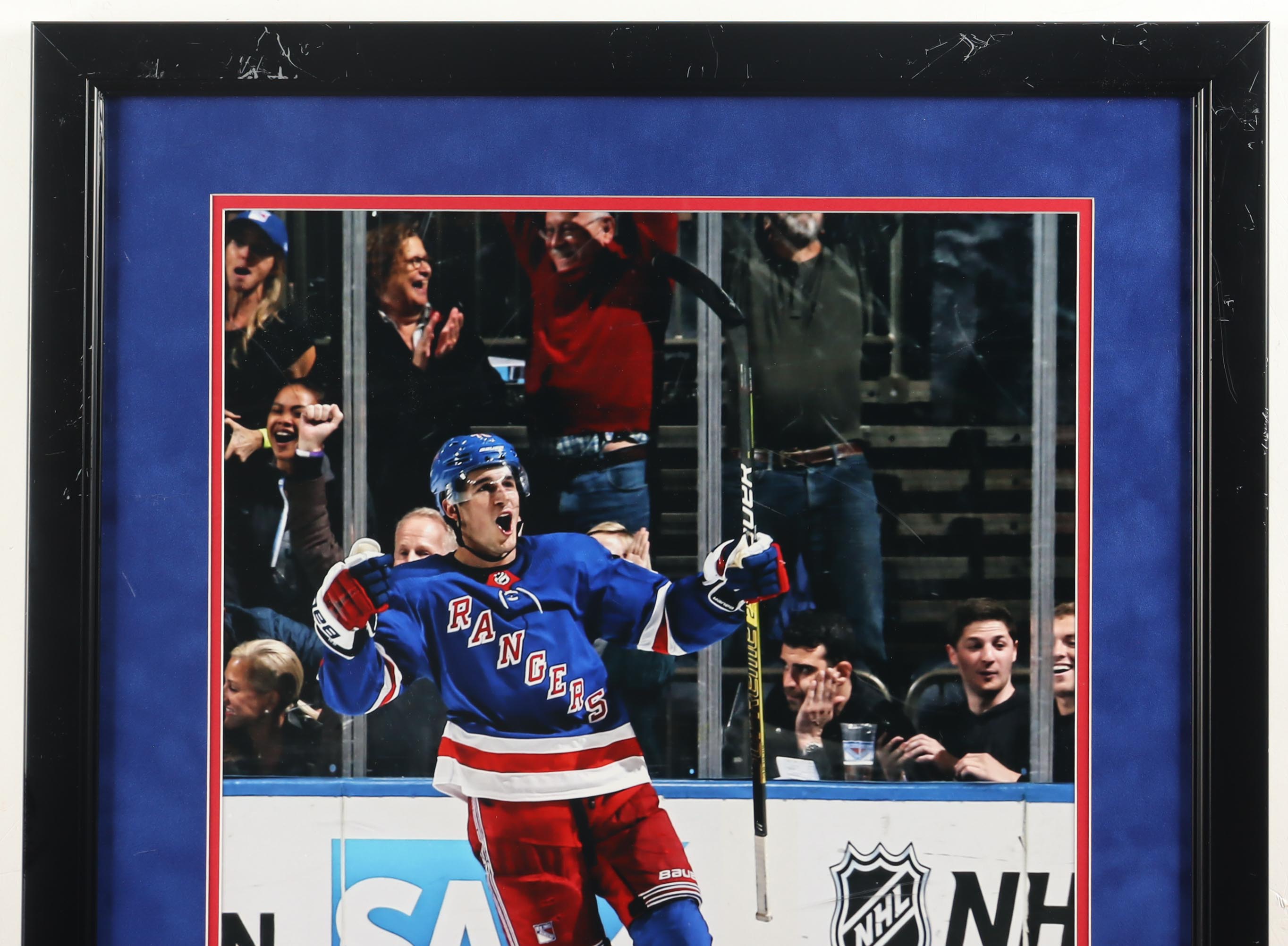 Custom frame measures 23" x 27" in size. Photograph is hand-signed by Brady Skjei (New York Rangers).