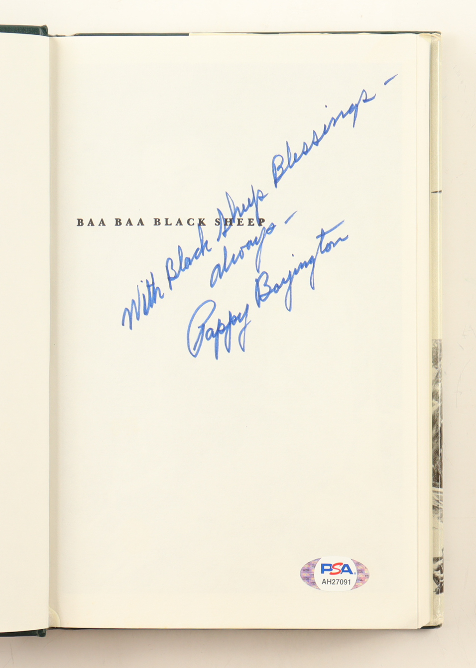 Pappy Boyington Signed "Baa Baa Black Sheep" Hardcover Book Inscribed 'With Black Sheep Blessings' (PSA)