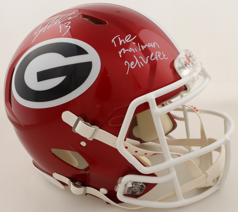 Stetson Bennett Signed Georgia Bulldogs Full-Size Authentic On-Field Flash Alternate Speed Helmet Inscribed "The Mailman Delivered" (Beckett)