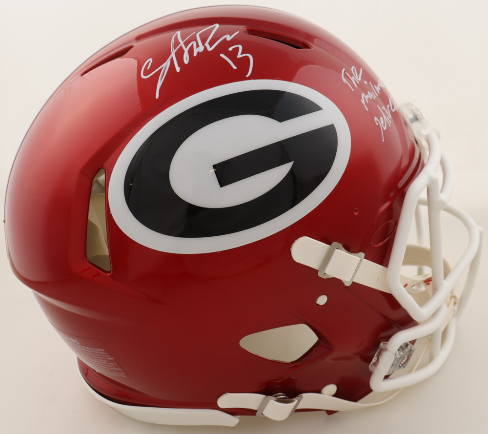 Riddell Georgia Bulldogs full-size authentic on-field Flash Alternate speed helmet has been hand-signed and inscribed by Stetson Bennett.