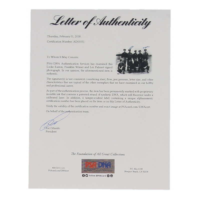 This PSA/DNA authenticated 8x10 signed photograph offers collectors a rare opportunity to acquire the authentic autographs of Next Objective crew members—participants in one of the most momentous and carefully orchestrated air operations in world history.