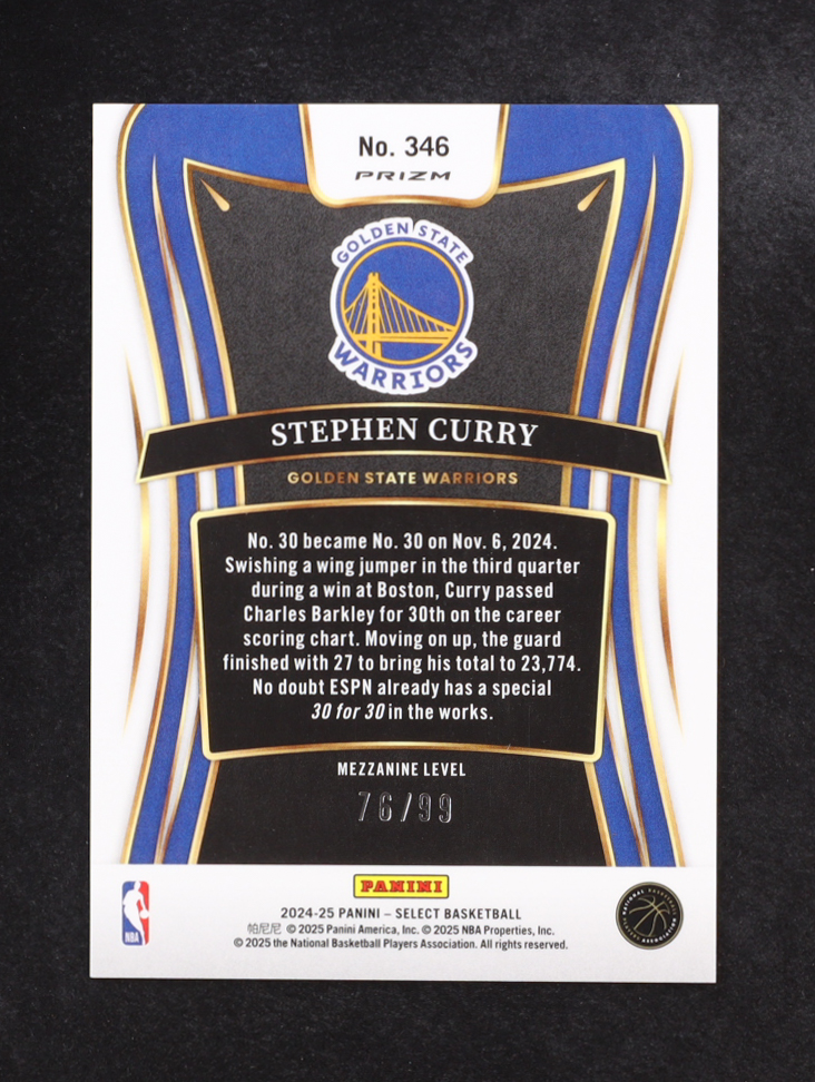 Stephen Curry 2024-25 Select Blue Flash Prizms #346 #76/99
