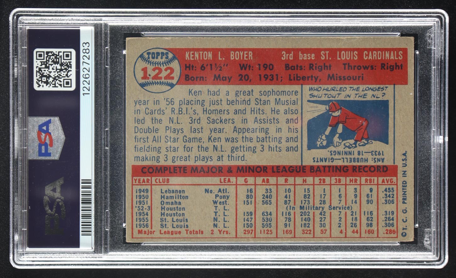 Ken Boyer Signed 1957 Topps #122 (PSA 9)