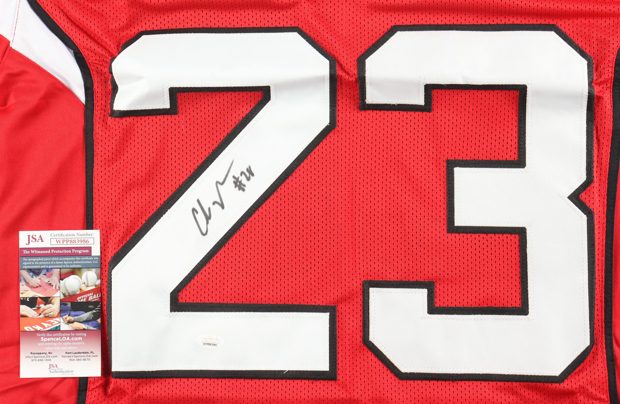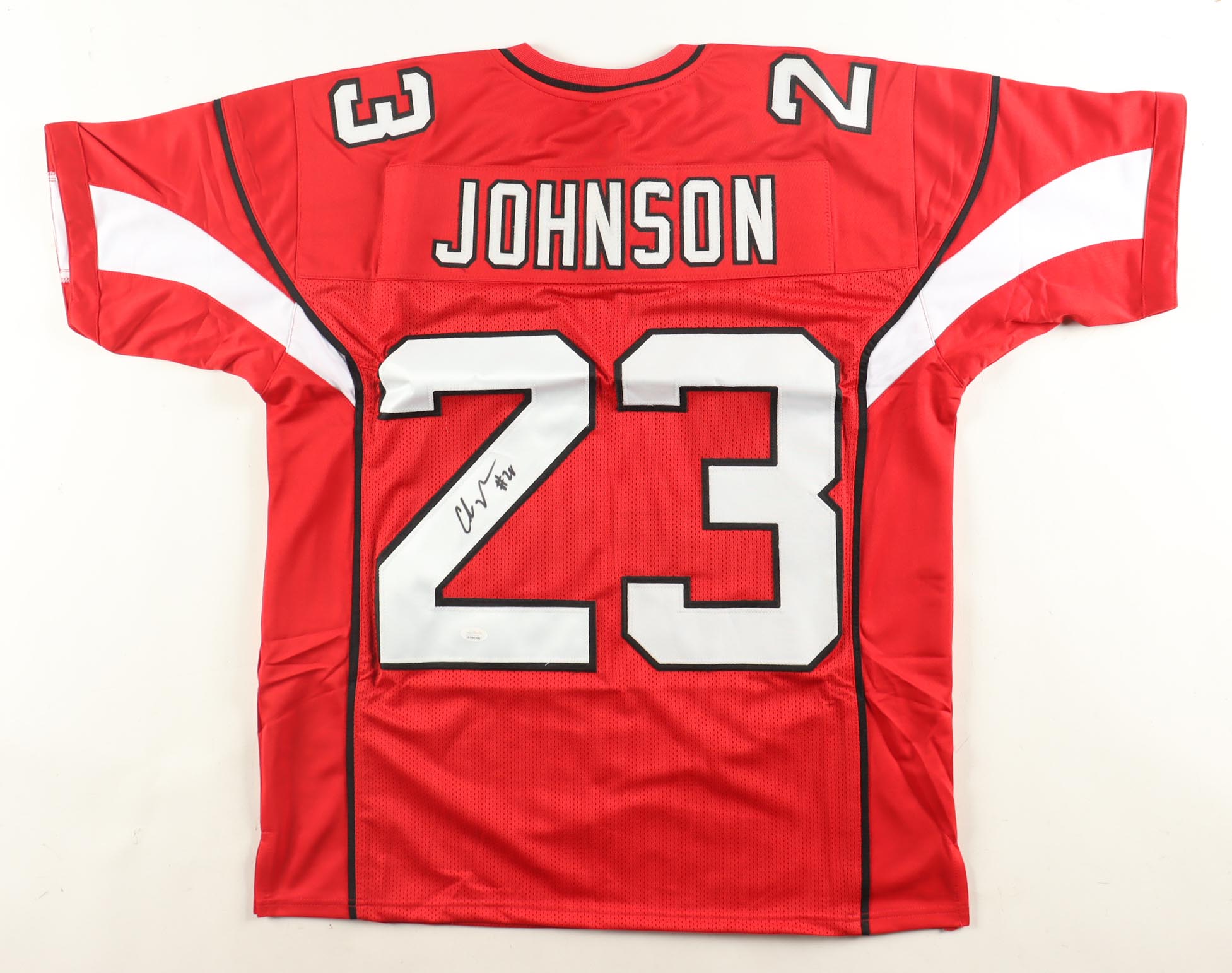 Custom jersey with everything sewn on, size XL. Hand-signed by Chris Johnson.