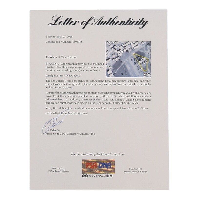 Robert O'Neill's name resonates deeply within the annals of military history. As a highly decorated Navy SEAL, his courage and skill have been instrumental in numerous critical missions, embodying the ethos of valor, loyalty, and sacrifice. Now, you have the exclusive opportunity to own a piece of this storied legacy – authenticated by the esteemed PSA/DNA authentication services.