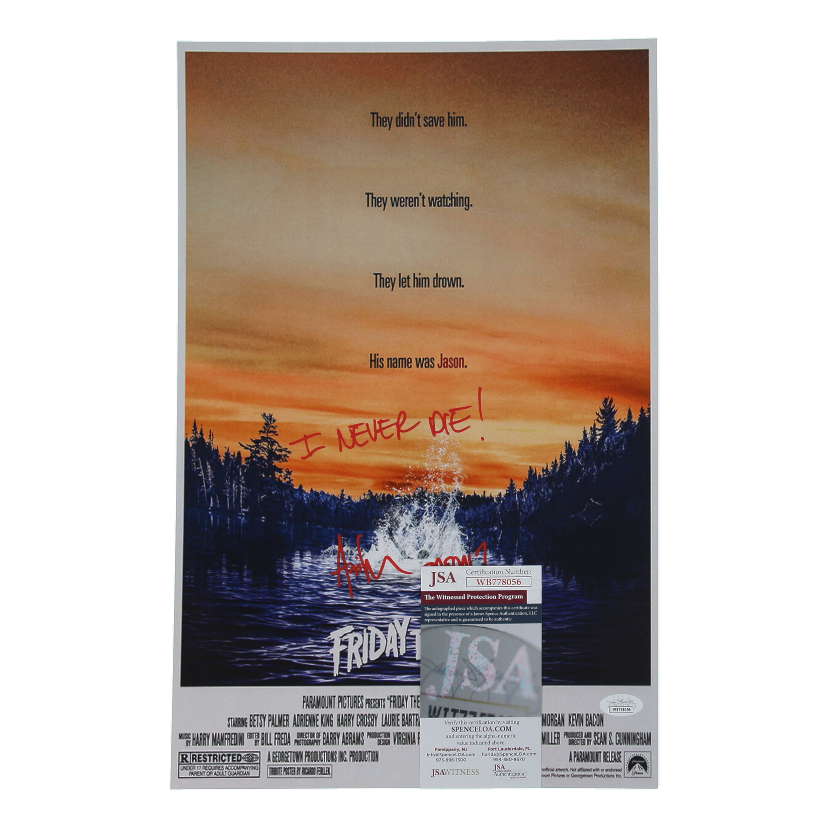 Ari Lehman Signed "Friday the 13th" 11x17 Photo Inscribed "I Never Die!" & "Jason 1" (JSA)