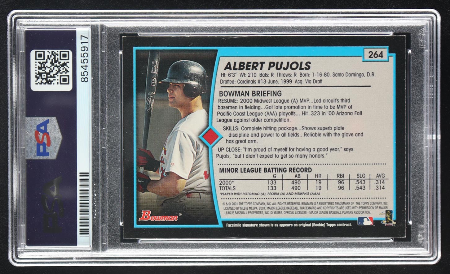 Albert Pujols Signed 2001 Bowman #264 RC (PSA)