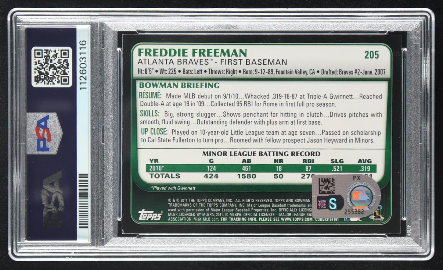 Freddie Freeman Signed 2011 Bowman #205 RC (PSA 7)