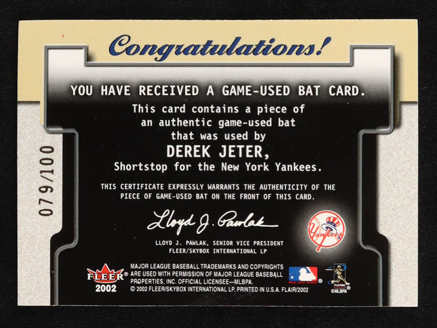 Derek Jeter 2002 Flair Power Tools Bats Gold #13 #79/100