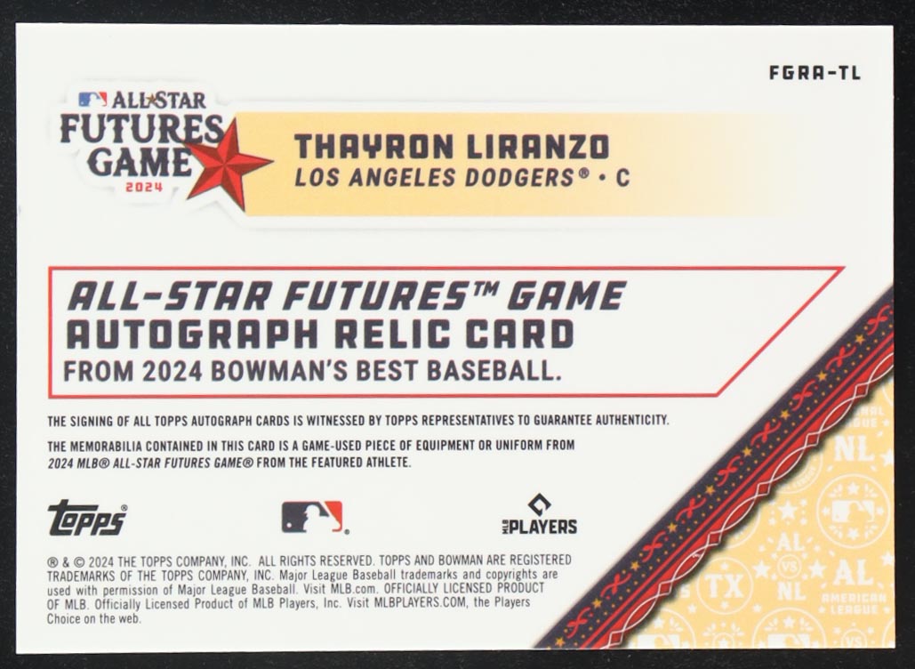 Thayron Liranzo 2024 Bowman's Best Topps All-Star Futures Game Relic Memorabilia Autographs #FGRR-TL #014/150