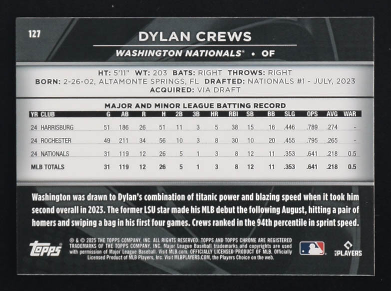Dylan Crews 2025 Topps Chrome Black #127 RC