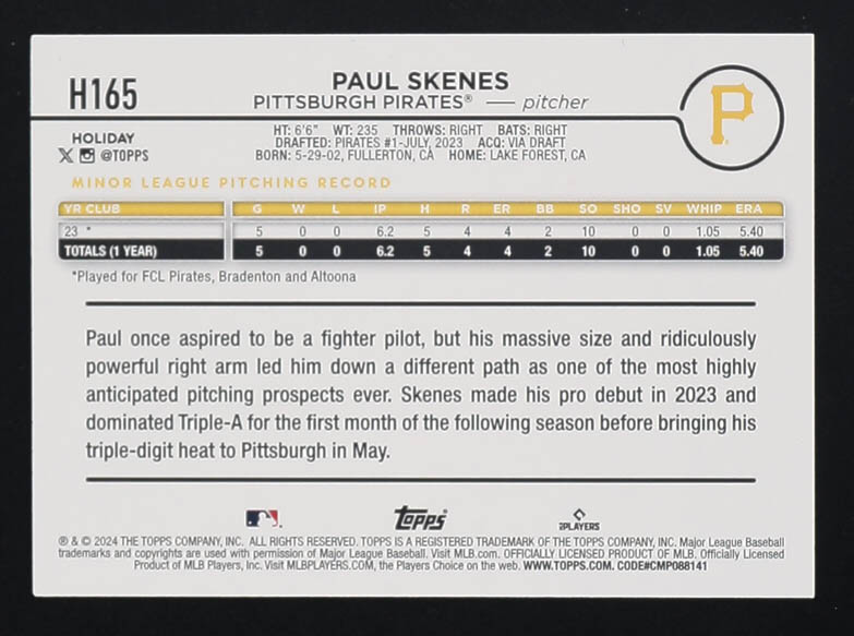 Paul Skenes 2024 Topps Holiday #H165 RC