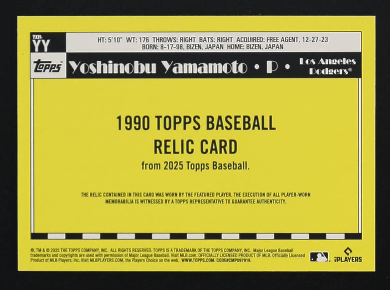 Yoshinobu Yamamoto 2025 Topps '90 Topps Relics #T90R-YY