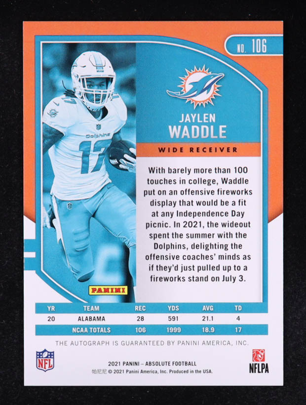 Jaylen Waddle 2021 Absolute Signature Rookies Orange Mosiac #106 #40/75 RC