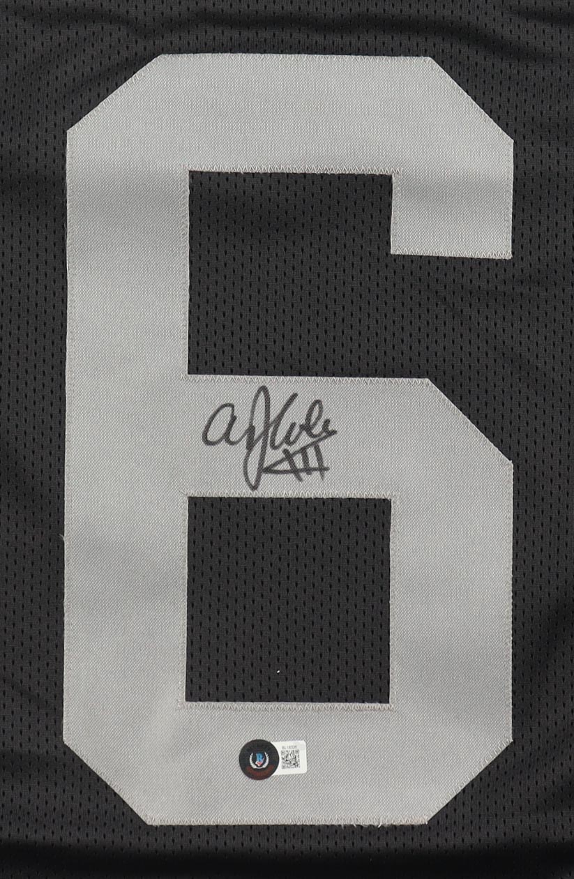 Custom jersey. Everything sewn on, size XL. Hand-signed by A. J. Cole III.