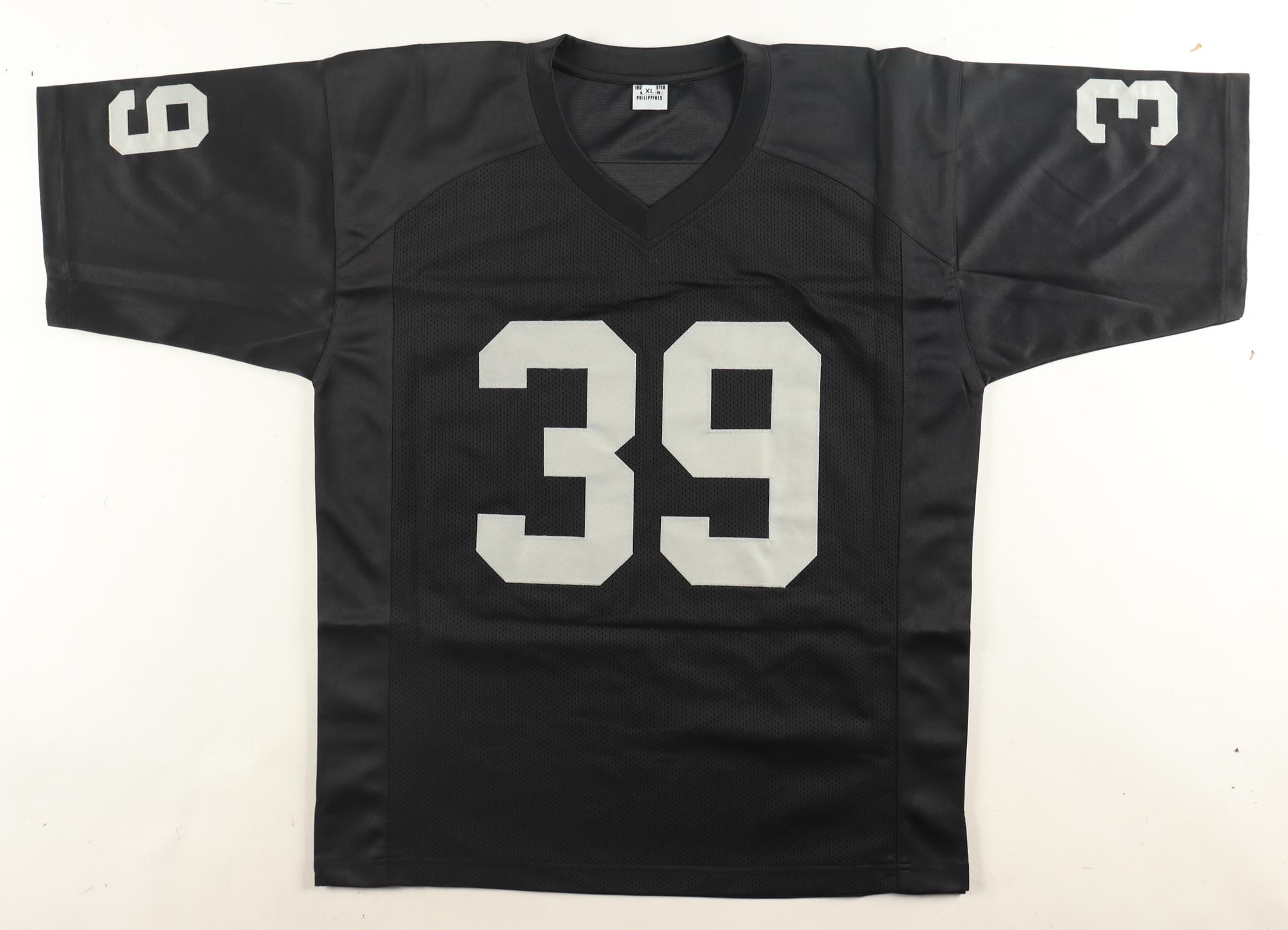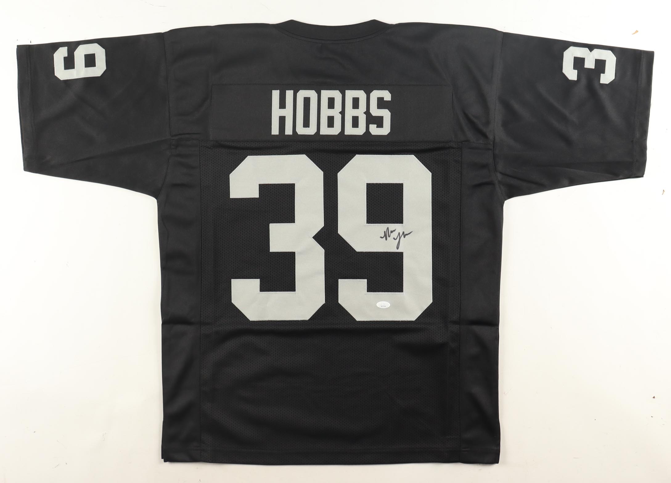 Custom jersey with everything sewn on, size L. Hand-signed by Nate Hobbs.