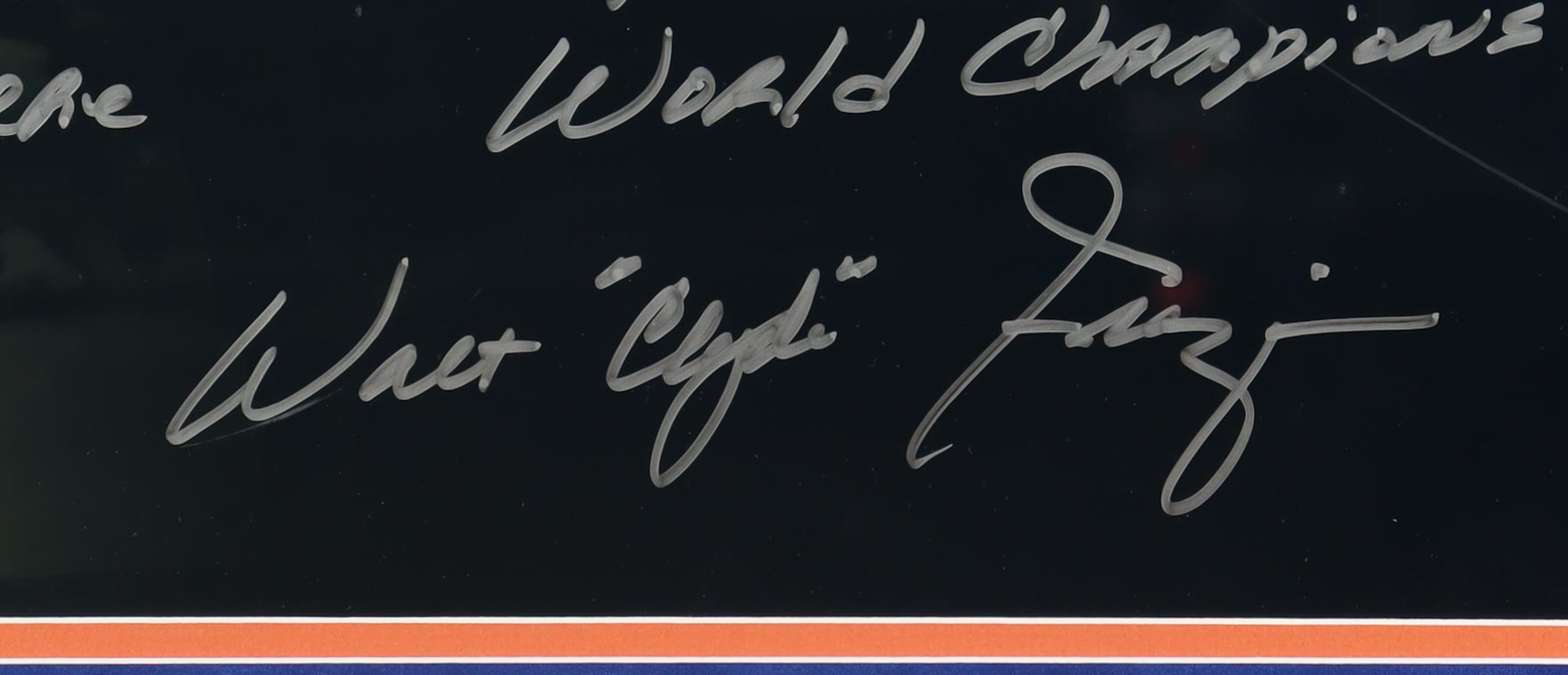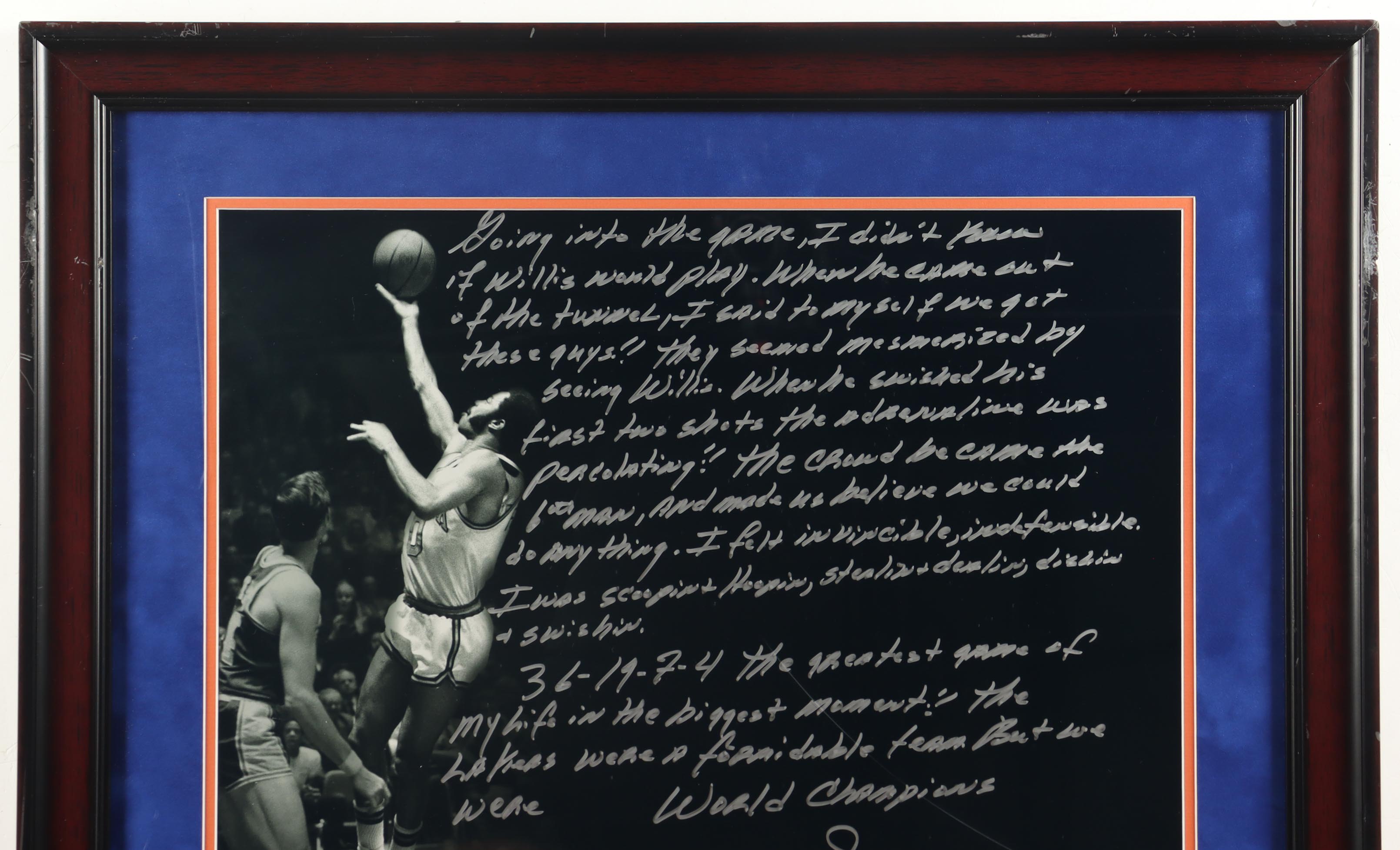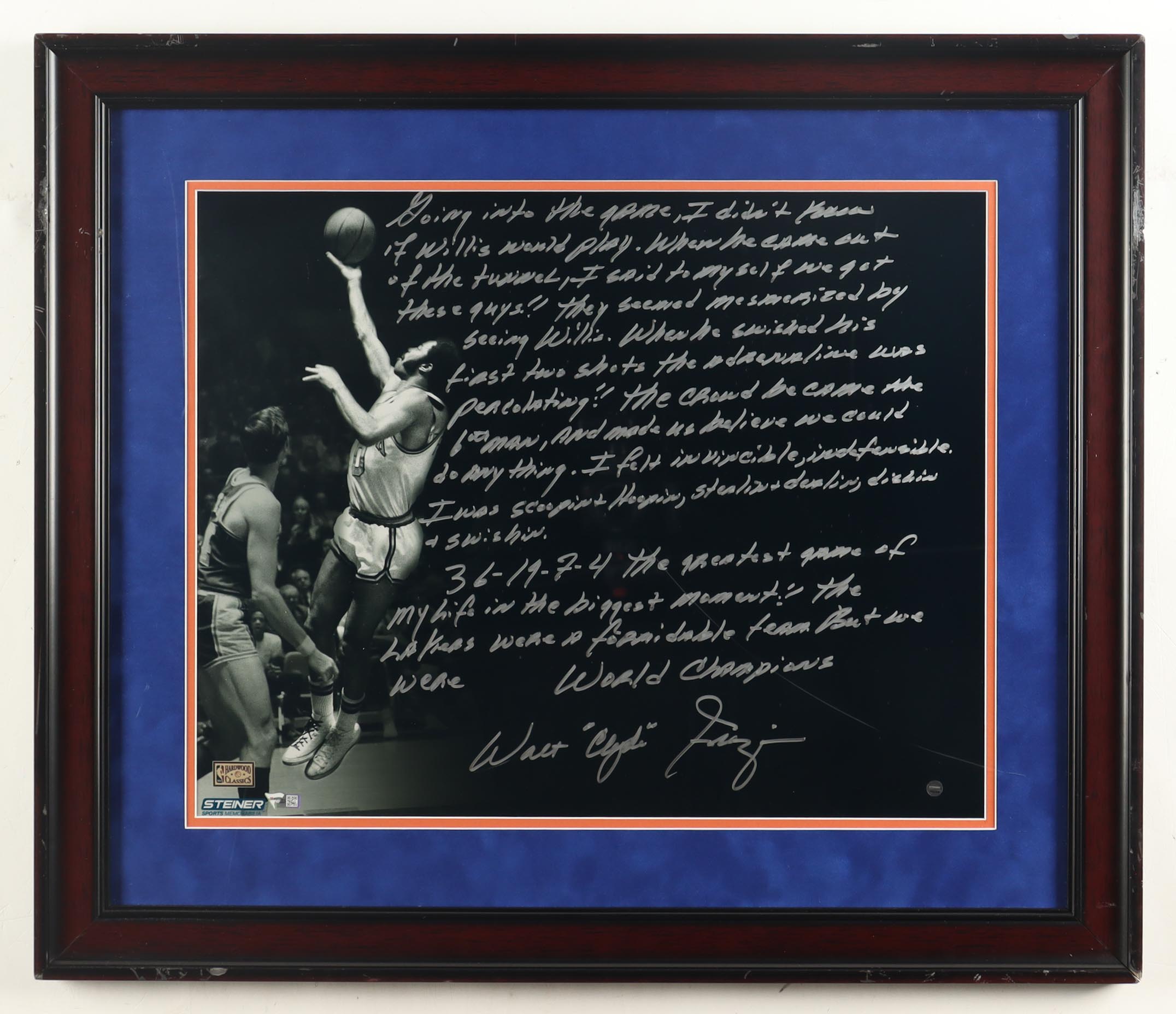 Custom frame measures approximately 23" x 28" in size. Hand-signed by Walt Frazier (New York Knicks, HOF). Please see photos for details regarding the item. Note that the frame shows signs of wear.