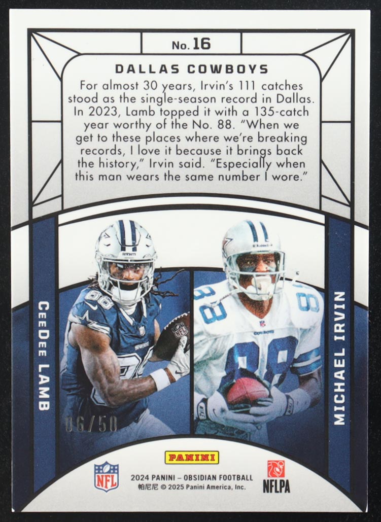 CeeDee Lamb / Michael Irvin 2024 Panini Obsidian Eclipsing Legends Purple #16 #06/50