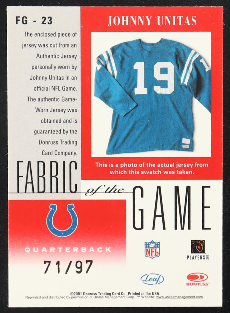 Johnny Unitas 2001 Donruss Leaf Fabric of the Game Legendary Certified Material Jersey Game-Worn #22 #71/97