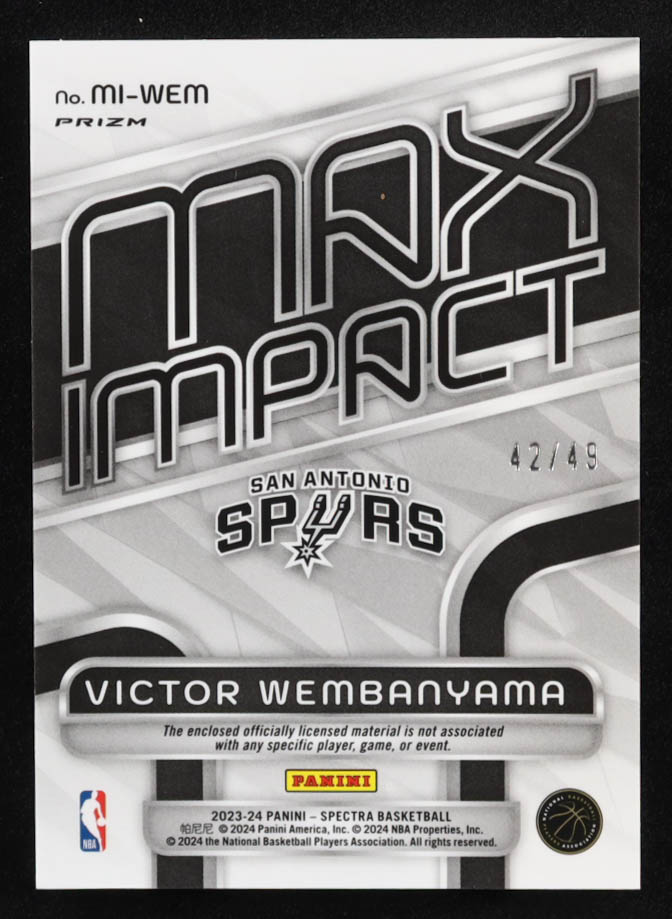 Victor Wembanyama 2023-24 Panini Spectra Max Impact Jerseys Astral #9 #42/49 RC
