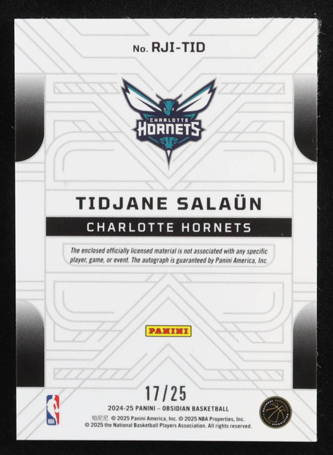 Tidjane Salaun 2024-25 Panini Obsidian Rookie Jersey Ink Electric Etch Green Flood #27 #17/25 RC