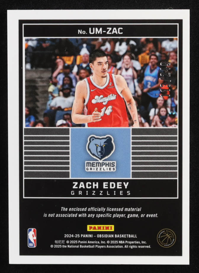Zach Edey 2024-25 Panini Obsidian Unbreakable Memorabilia #28 #113/249 RC