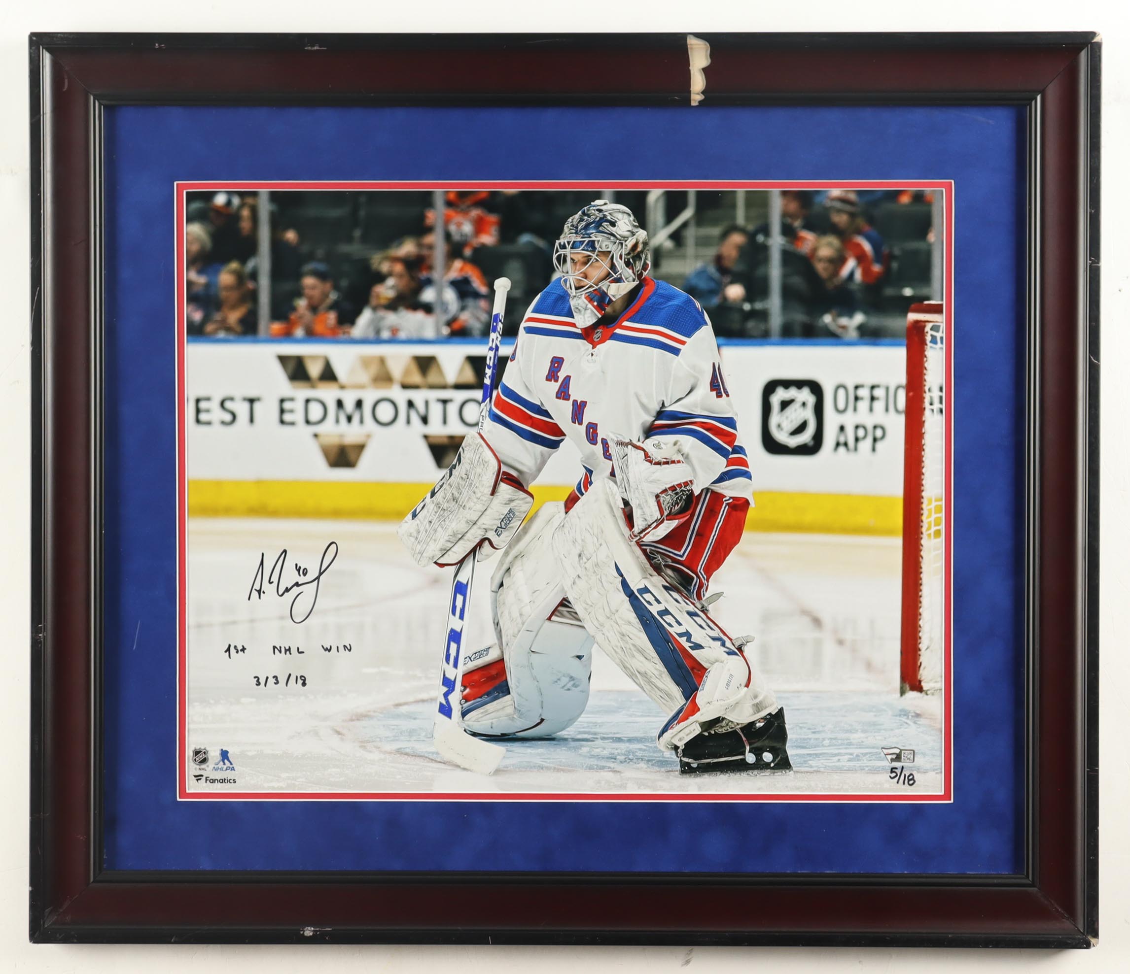 Alexandar Georgiev Signed Rangers Custom Framed Photo Display Inscribed "1st NHL Win 3/3/18" #5/18 (Fanatics)
