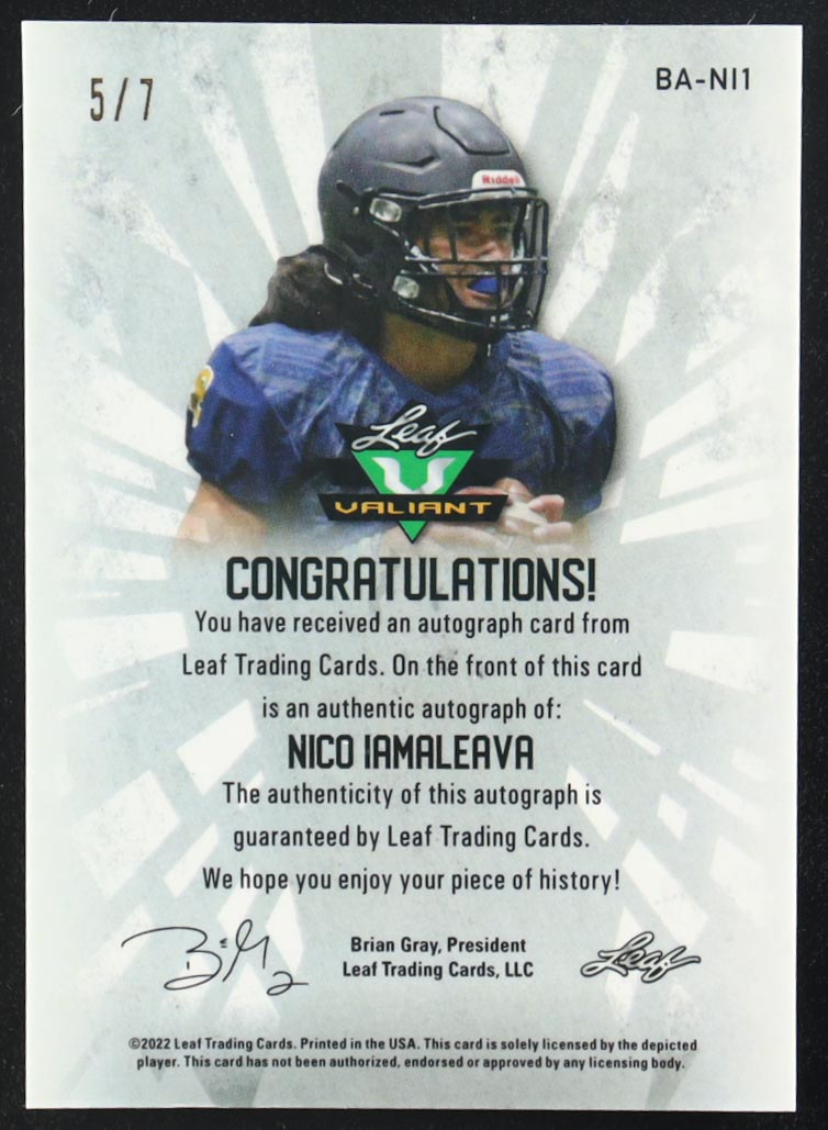 Nico Iamaleava 2022 Leaf Valiant Pink Autographs #BA-NI1 RC #5/7