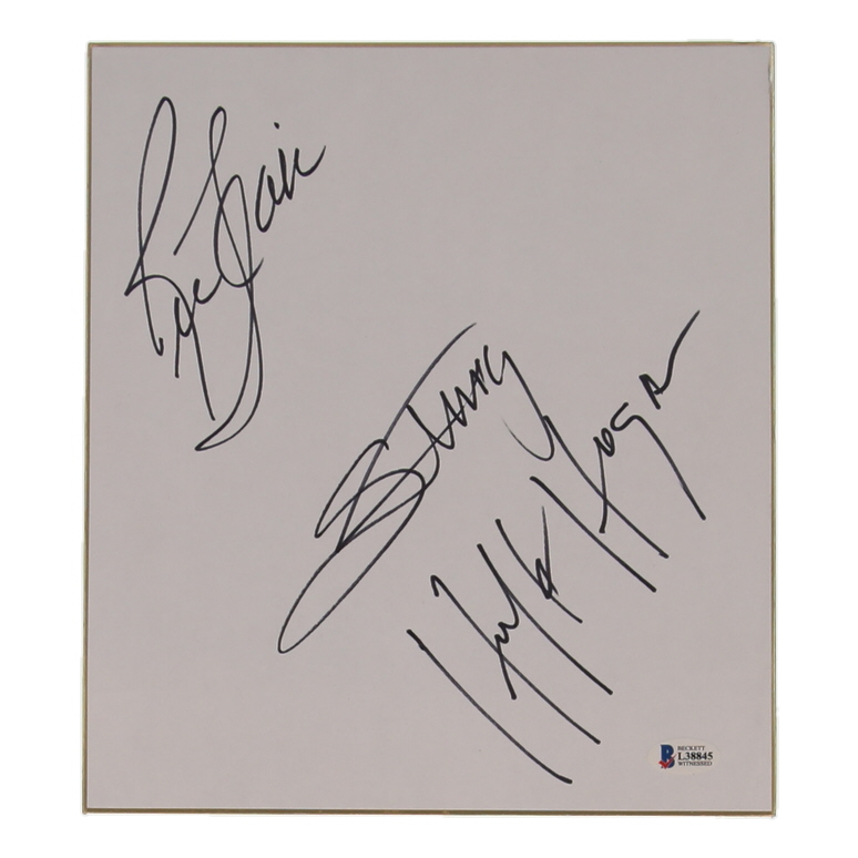 Hulk Hogan, Ric Flair, & Sting Signed 9.5x10.5 Shikishi Board (Beckett)
