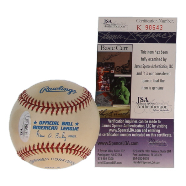 Rawlings Official American League baseball. Hand-signed by Whitey Ford (D. 2020, New York Yankees, HOF).