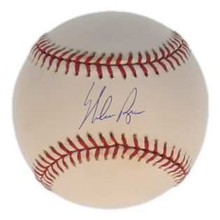 Rawlings Official American League Baseball. Hand-signed by Nolan Ryan (Houston Astros, HOF). Please note, ball is stained and naturally toned.