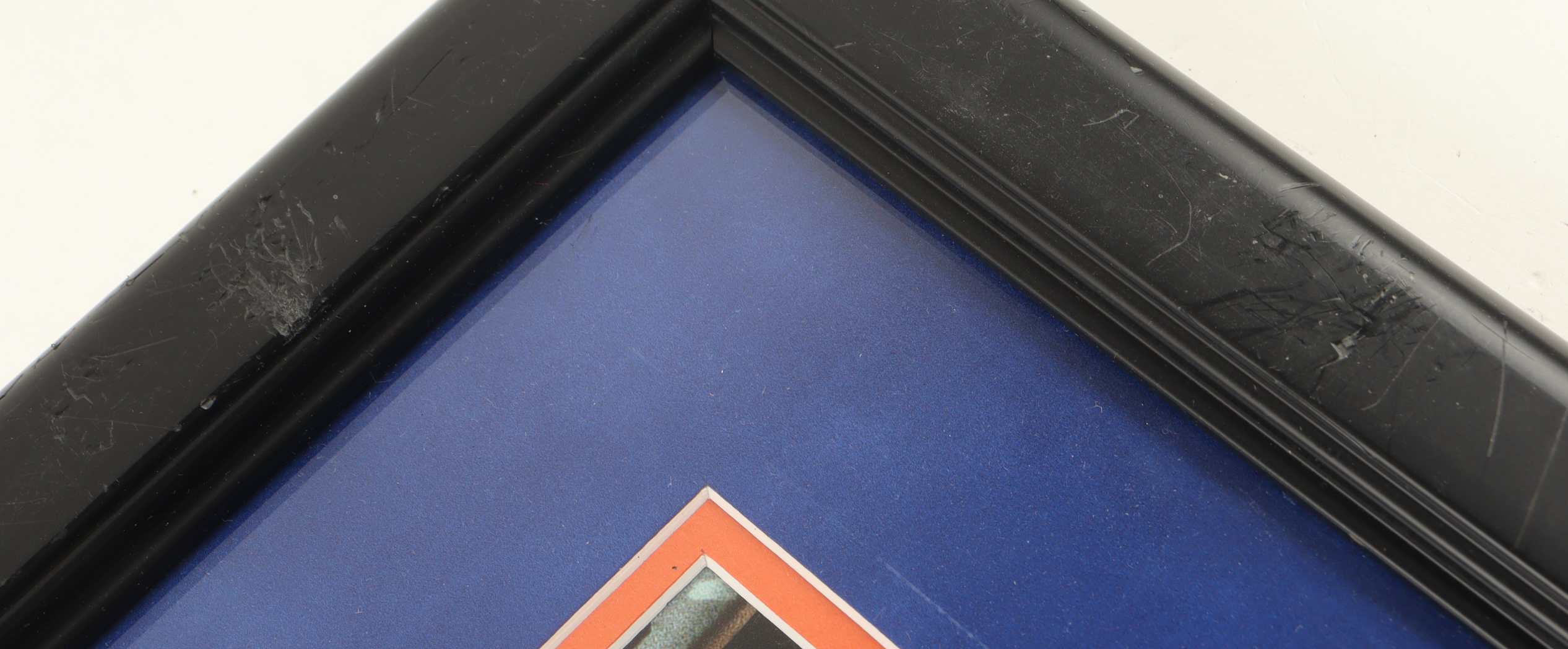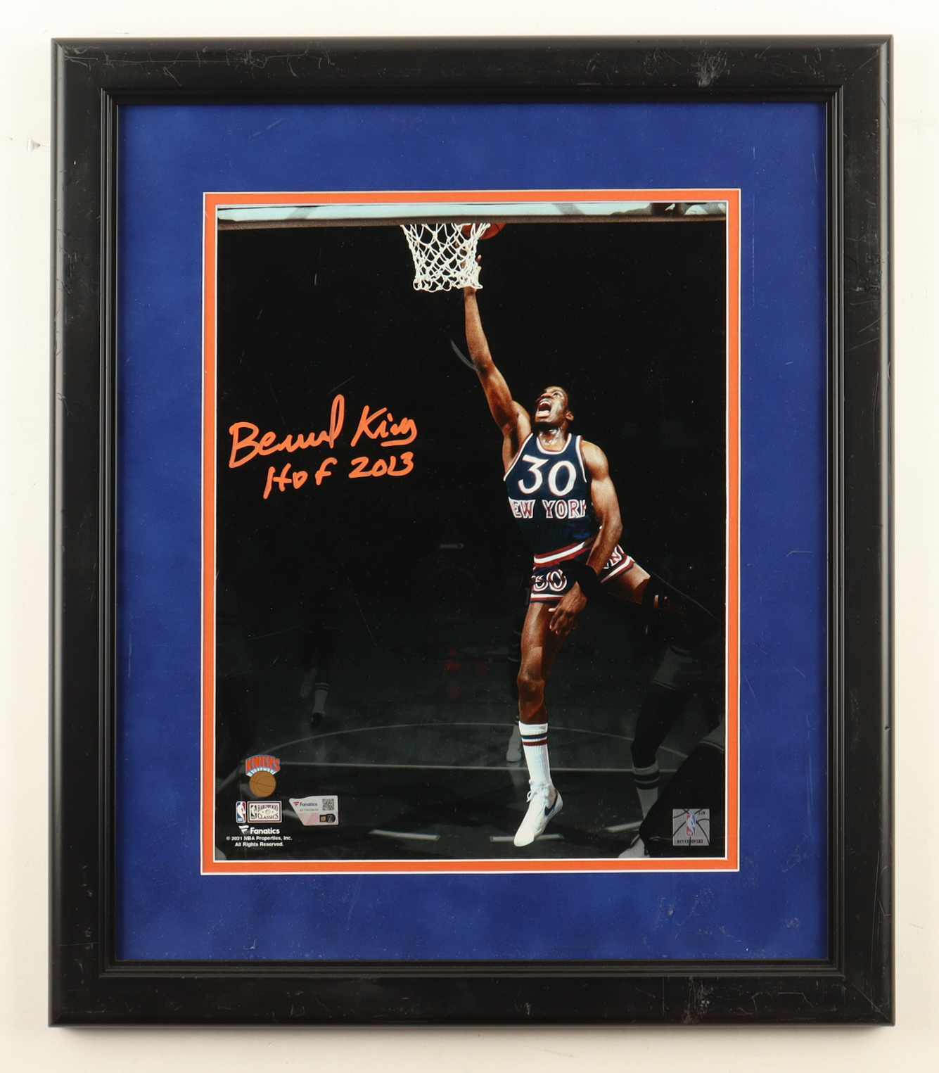Custom frame measures approximately 17" x 20" in size. Hand-signed and inscribed by Bernard King (New York Knicks, HOF). Please see photos for details regarding the item. Note that the frame shows signs of wear.