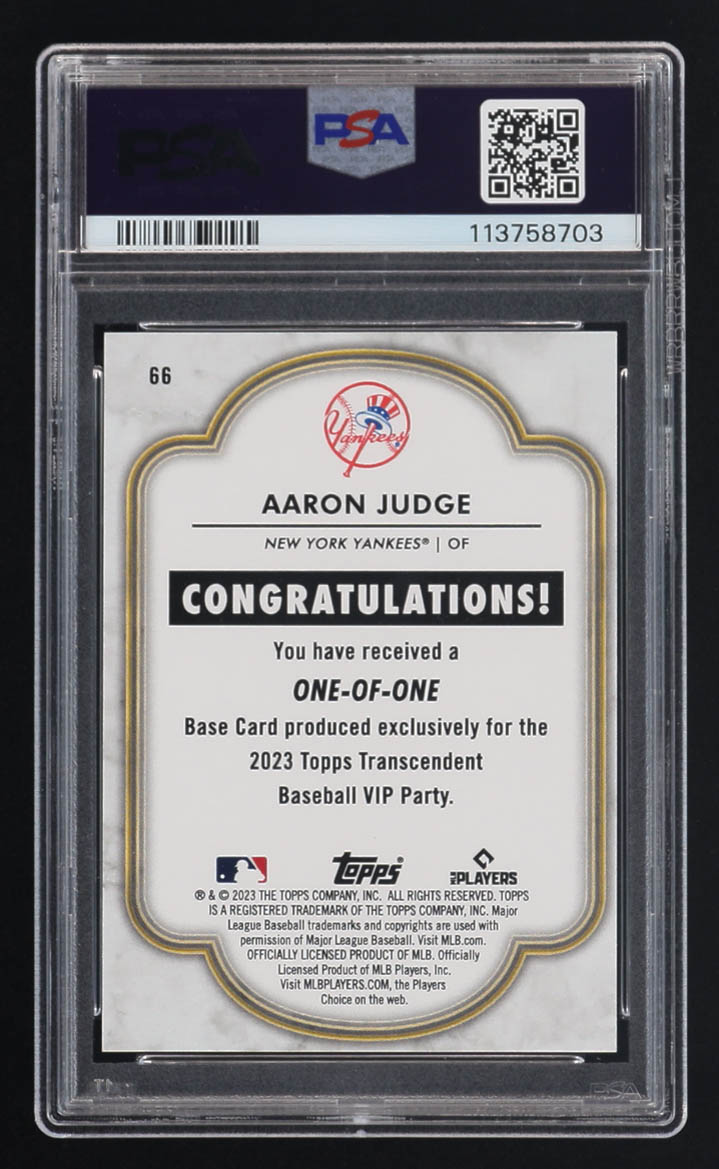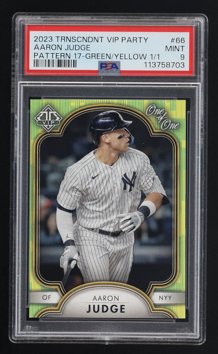 Aaron Judge 2023 Topps Transcendent Vip Party Pattern 17 Green/Yellow #66 #1/1 (PSA 9)