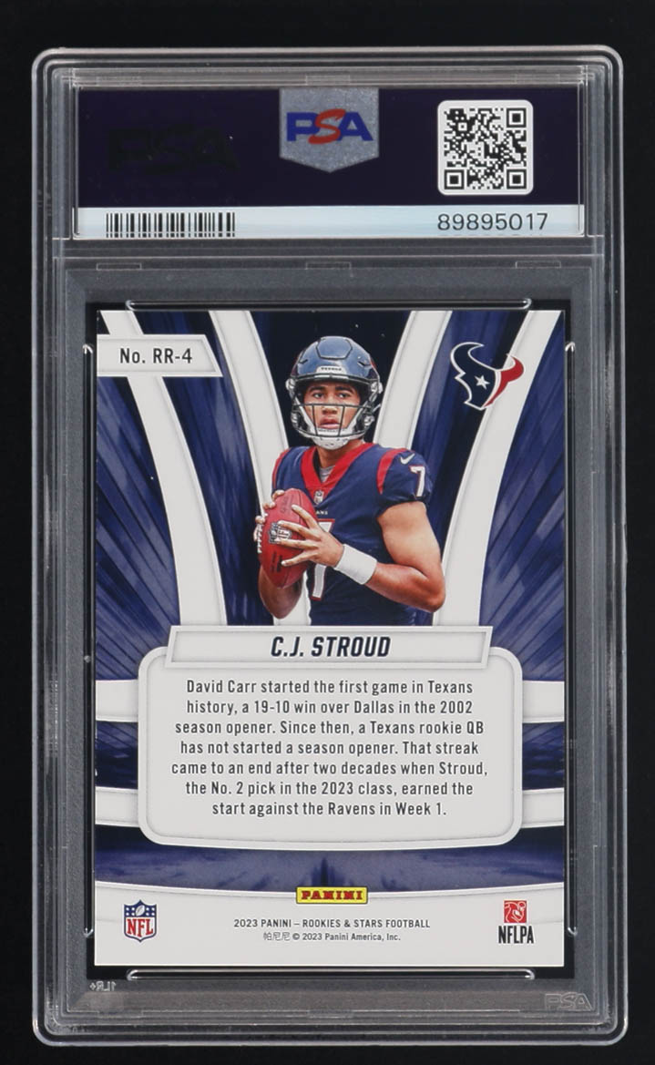 CJ Stroud 2023 Panini Rookies & Stars Rookie Rush-Red And Blue #RR4 RC #01/15 (PSA 9)