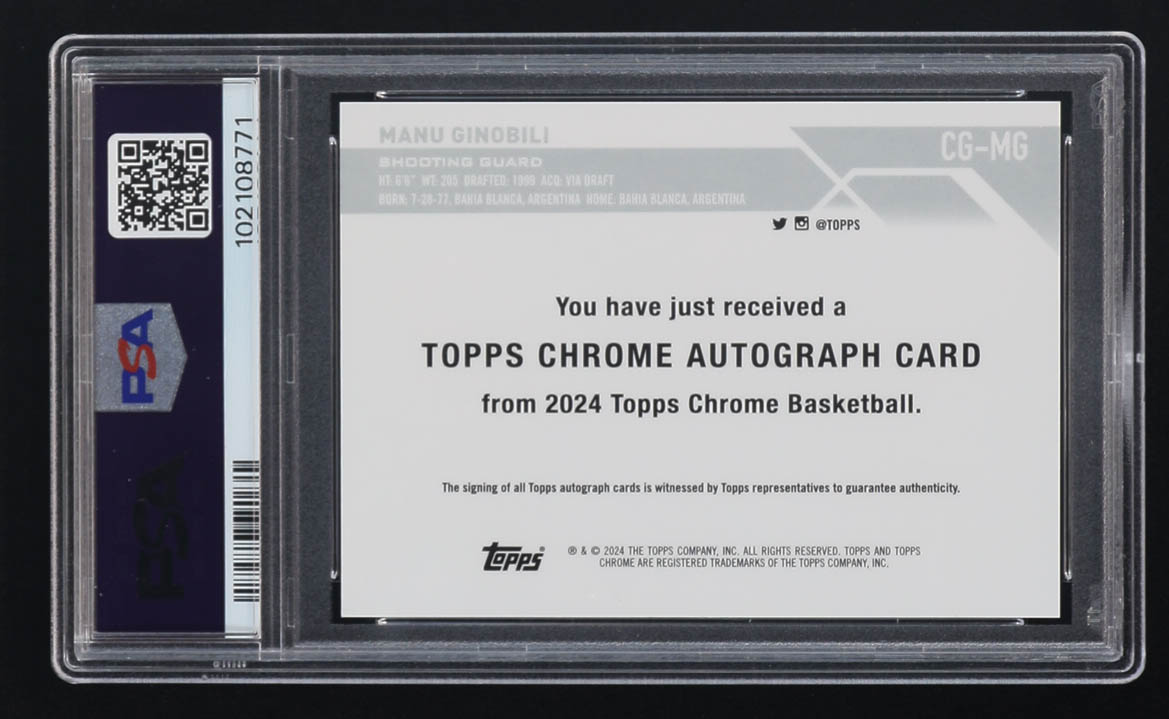 Manu Ginobli 2023 Topps Chrome Gold Refractor Autograph #CGMG #44/50 (PSA 10)