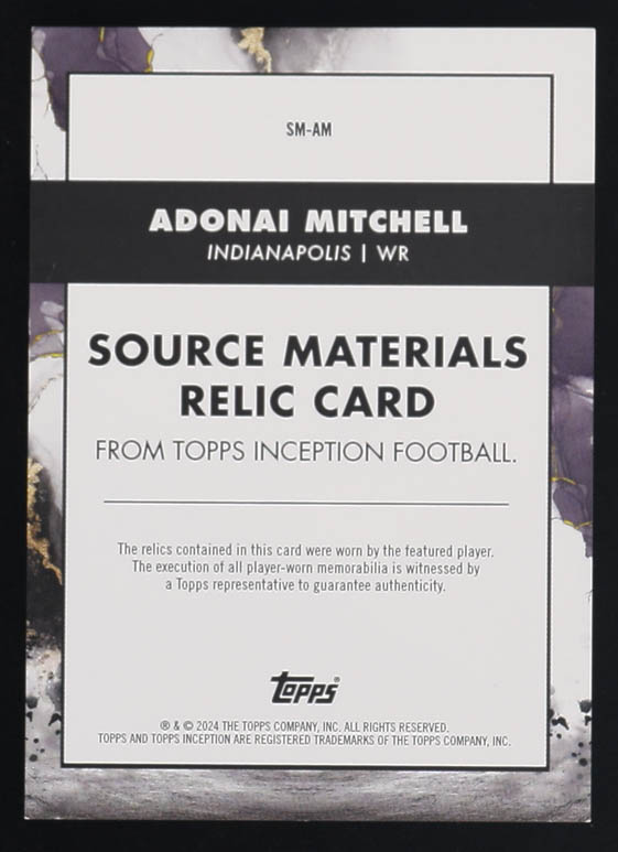 Adonai Mitchell 2024 Topps Inception Source Materials Magenta #SMAM #33/99 RC
