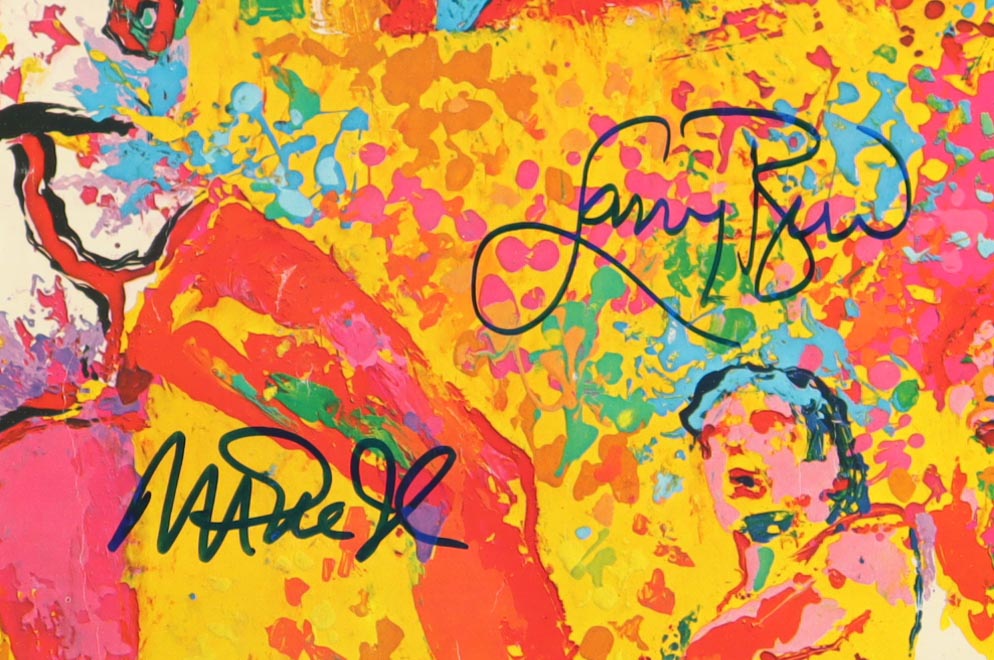 Custom frame measures 27" x 27" in size and features an art print that has been hand-signed by Magic Johnson (Los Angeles Lakers, HOF) and Larry Bird (Boston Celtics, HOF) by Leroy Neiman (D. 2016).
