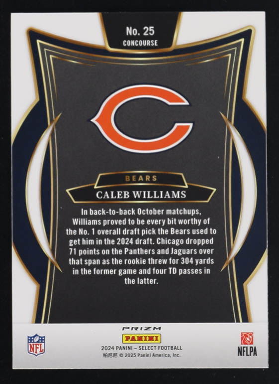 Caleb Williams 2024 Select Prizm Black and Red Shock #25 RC
