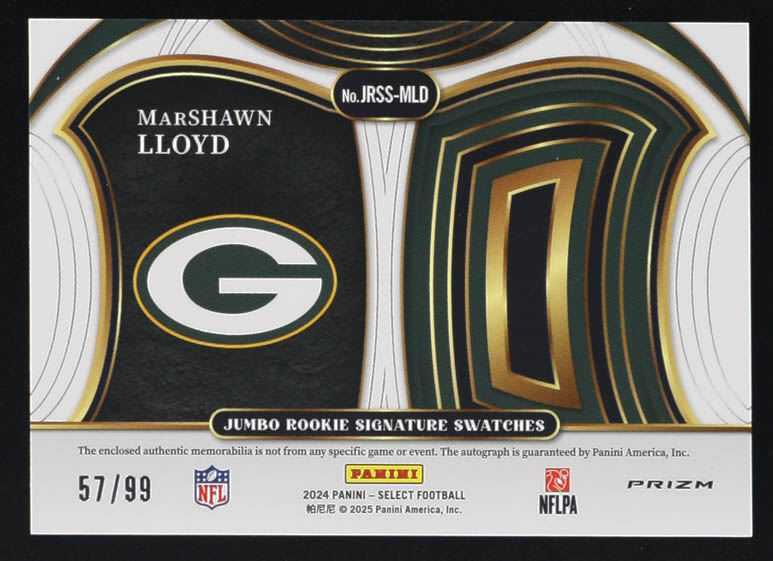 MarShawn Lloyd 2024 Select Jumbo Rookie Signature Swatches Prizm #26 #57/99 RC