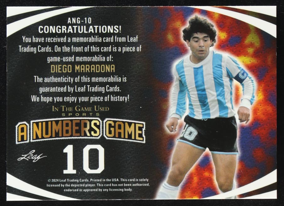 Diego Maradona 2024 Leaf In the Game Used A Numbers Game #ANG-10 #4/50