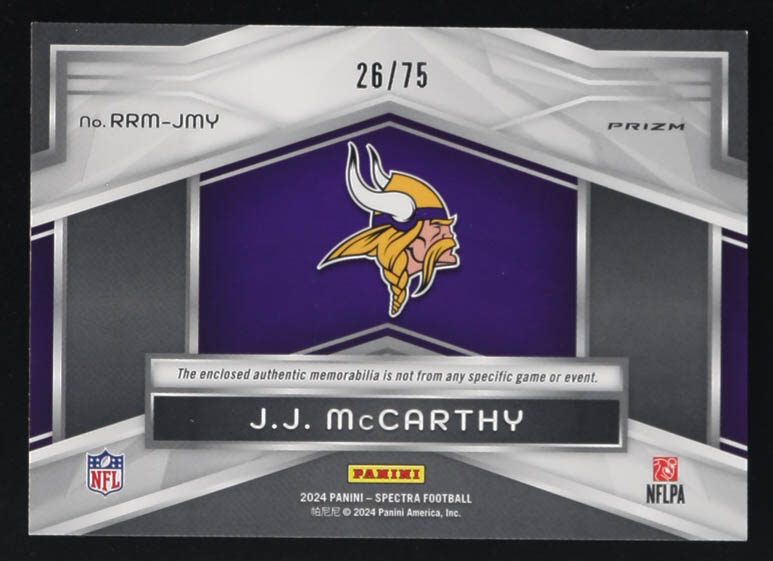 JJ McCarthy 2024 Panini Spectra Rising Rookie Materials Celestial #10 #26/75 RC