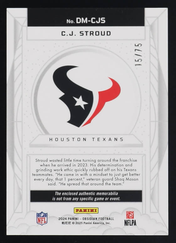 CJ Stroud 2024 Panini Obsidian Dusk Memorabilia Red #8 #15/75