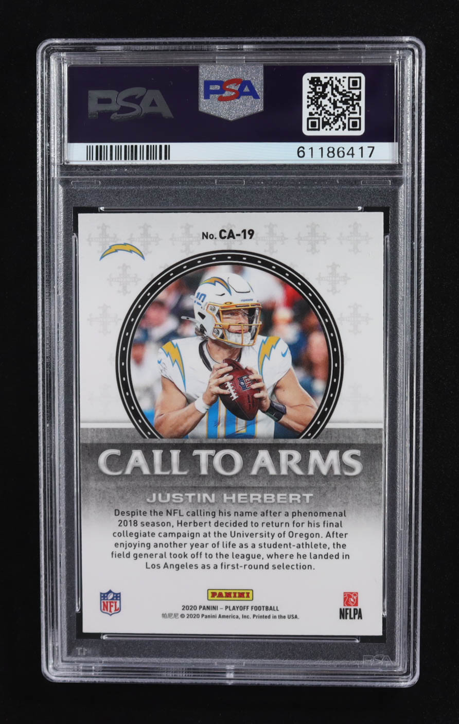 Justin Herbert 2020 Panini Playoff Call to Arms #CA19 RC (PSA 10)