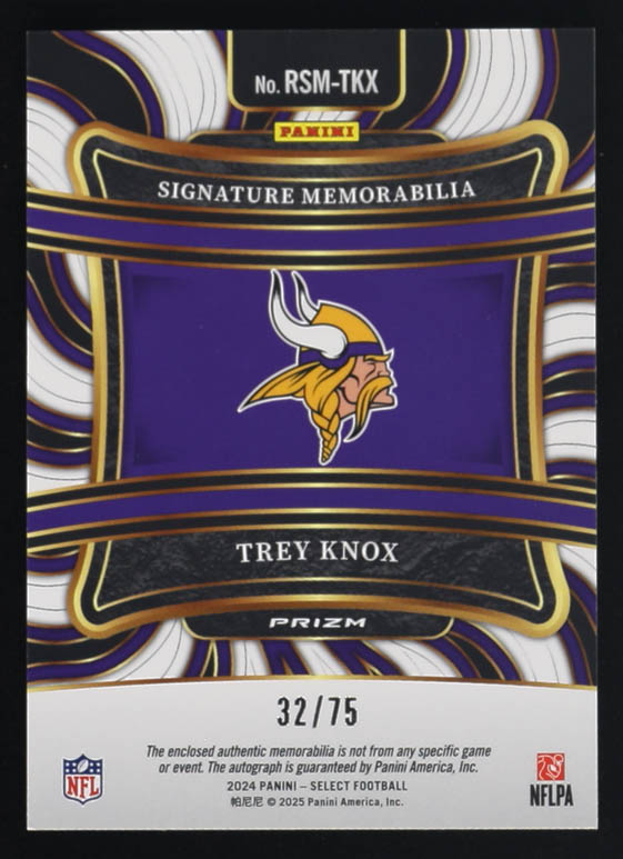 Trey Knox 2024 Select Rookie Signature Memorabilia Prizm Blue #45 #32/75 RC
