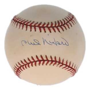 Rawlings Official National League Baseball has been hand-signed by Phil Niekro (D. 2020, Atlanta Braves, HOF). Please note, baseball is naturally toned and stained.