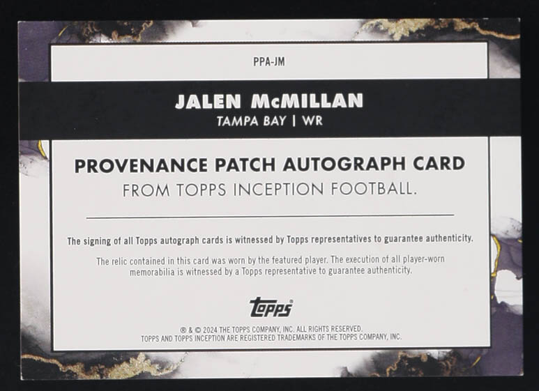 Jalen McMillan 2024 Topps Inception Provenance Patch Autographs #PPAJM #08/15 RC
