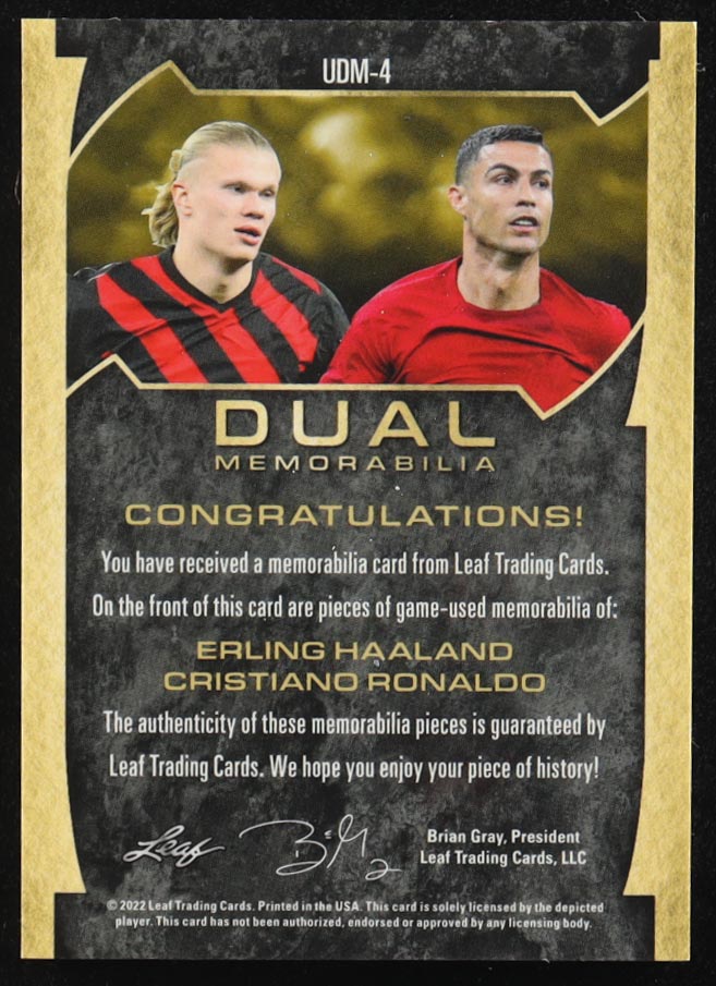 Erling Haaland/Cristiano Ronaldo 2022 Leaf Ultimate Dual Memorabilia Platinum Spectrum #UDM-4 #12/20
